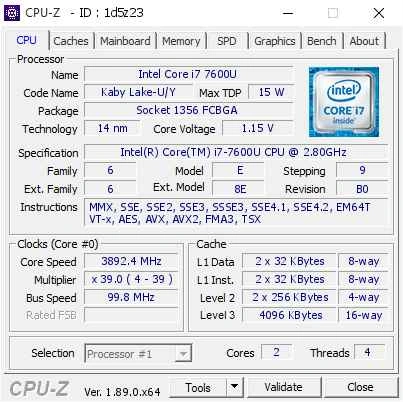 - Intel Core i7-7600U فرکانس 2.8 تا 3.9